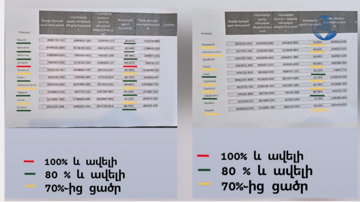 Որոշները (Մեղրի, Քաջարան, Աշտարակ, Կապան) գտնվում են 50֊ից 60 տոկոս կատարողականի միջակայքում։