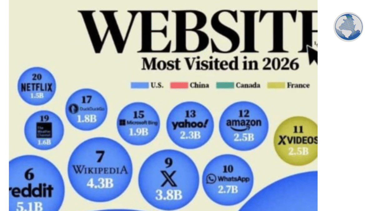 Semrush-ի 2026 թվականի հունվարի վերջին այցելությունների տվյալների համաձայն՝ վարկանիշը արտացոլում է, թե որ ընկերություններն են այսօր ձևավորում թվային լանդշաֆտը։ Որոնողական համակարգերը և տեսանյութերի հարթակները մնում են առցանց գործունեության հիմքը։ Միայն Google-ը ավելի շատ այցելություններ է ներգրավում, քան հաջորդ հինգ կայքերը միասին վերցրած, իսկ YouTube-ը ամրապնդում է իր կարգավիճակը որպես աշխարհի առաջատար տեսանյութերի կենտրոն։