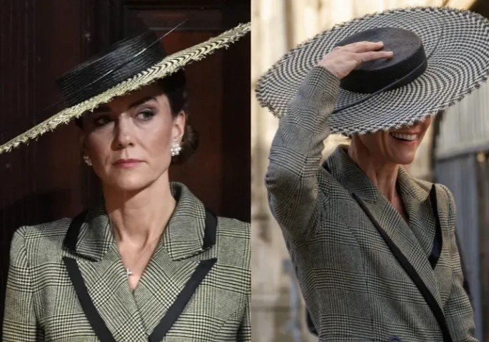 Արքայադուստրը Քենթերբերիի տաճար է ժամանել Suzannah London-ի մոխրագույն շոտլանդական վերարկու-զգեստով և բարձրակրունկ կոշիկներով: Մարգարտե ծաղիկներով ականջօղերը և դասական Chanel պայուսակը լրացնում էին նրա հանդերձանքը, բայց գլխավորը անգլիական Juliette Millinery ապրանքանիշի լայնեզր գլխարկն էր: Գլխարկը գրեթե ամբողջությամբ թաքցնում էր Քեյթի դեմքը և ուժեղ քամու պատճառով ստիպում էր արքայադստերը այն մշտապես ձեռքով պահել: Միդլթոնի տեսքը շատերին հիշեցրել է ԱՄՆ առաջին տիկին Մելանյա Թրամփի «մեմ» դարձած կերպարը, ով հայտնի է նմանատիպ գլխարկների հանդեպ սիրով: