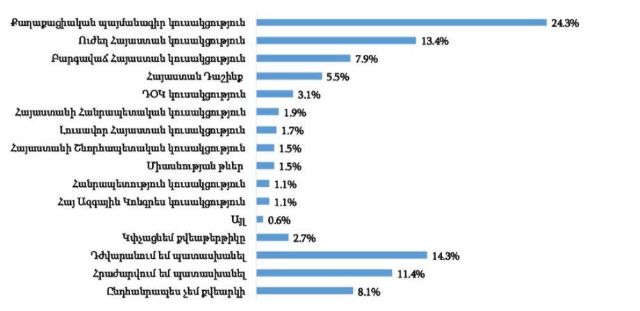 Ներկայացվել են արդի հիմնախնդիրների, քաղաքական իրավիճակի, կուսակցությունների վարկանիշների, Իրան – Իսրայել/ԱՄՆ հակամարտության և այլ թեմաների վերաբերյալ «Բազառ-Բլոտ» խորագրով հարցման արդյունքները, որն իրականացվել է ապրիլի 1-ից Ապրիլի ա-ն ընկած ժամանակահատվածում: