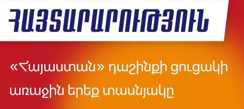 ՅԴ 29-րդ արտահերթ Գերագույն ժողովի եզրափակիչ նիստում և «Առաջ» կուսակցության համագումարում հաստատվել է «Հայաստան» կուսակցությունների դաշինքի նախընտրական ցուցակի առաջին երեք տասնյակը: