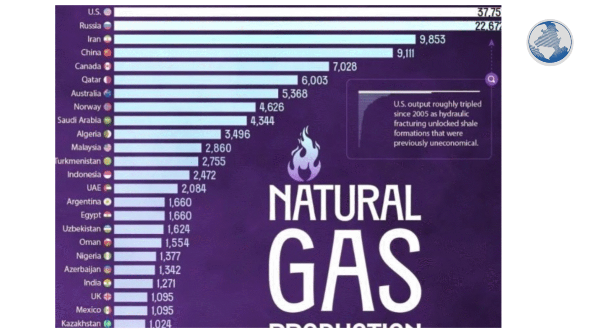 Միացյալ Նահանգները վստահորեն առաջատար դիրք է գրավել որպես բնական գազի աշխարհի խոշորագույն արտադրող՝ 2024 թվականին կազմելով համաշխարհային մատակարարման գրեթե մեկ քառորդը։
